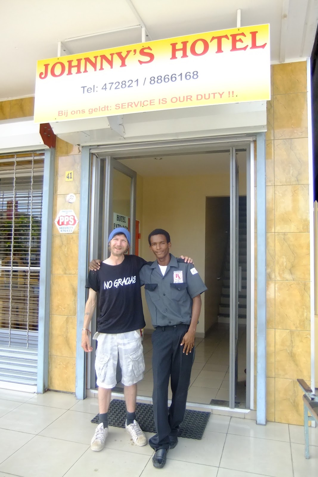 I found my own hotel while walking round the city centre. I should have booked to stay there really! But no, it was nice where I was and was just an extra gimmick to get my photo taken with the security guy from Johnny’s Hotel!