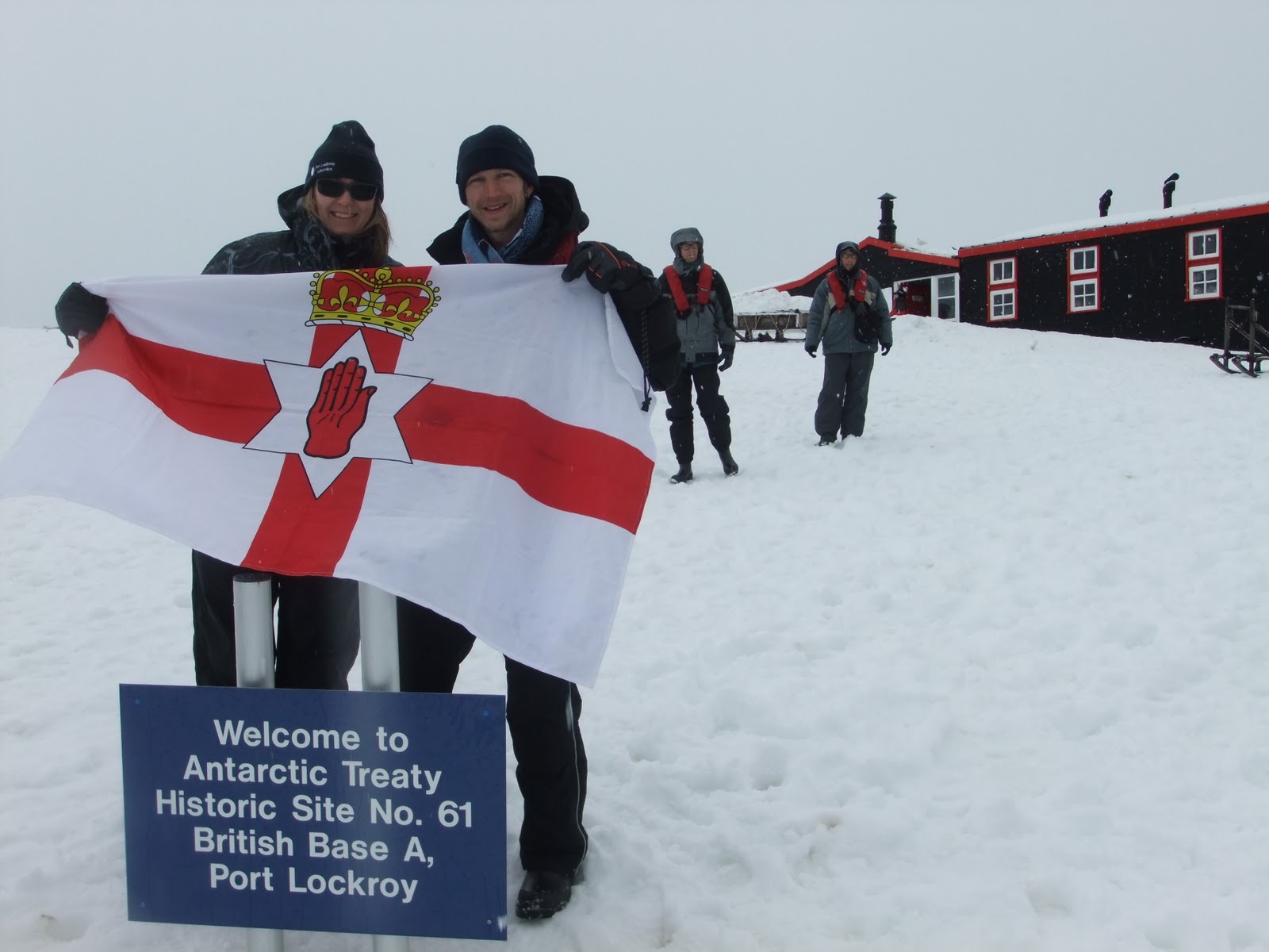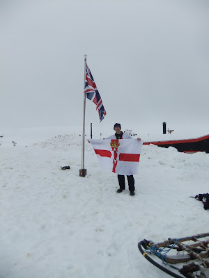 Without further ado we docked. Wearing my Glentoran (Belfast) FC shirt and draping my Northern Ireland flag I was welcomed onto the island, where I met the workers there. Tudor Morgan, the manager of the base and the world’s southernmost postable postbox welcomed us into this tiny Den.Â