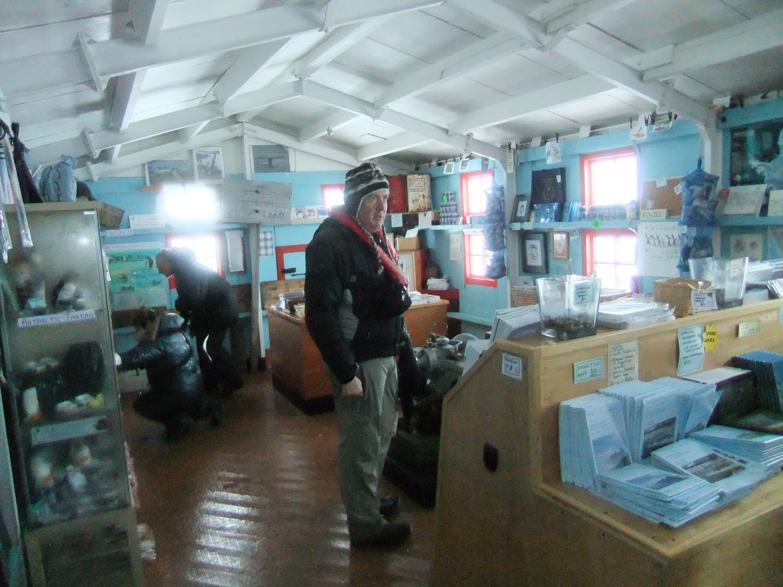 I was so impressed to find a shop there, that accepted British Pounds Sterling. I had a few quid on me and spent it there! But I carried mostly US Dollars, also accepted. I bought a few maps (more detailed ones than I had), badges, stamps and postcards. I had a few people on my Antarctica postcard list including my family, my flatmates and my mate Steve in New Zealand. With half the boat there at the same time, there were long queues!Â
