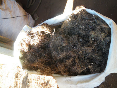 When the echinacea roots were dug up by the harvester they still had a lot of mud on them, so we had to break them up.
