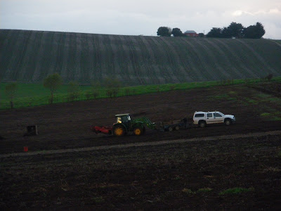 The tractor had a harvester on the back which could do just one row at a time, digging up the echinacea from the soil ready for us to shake and put into boxes.