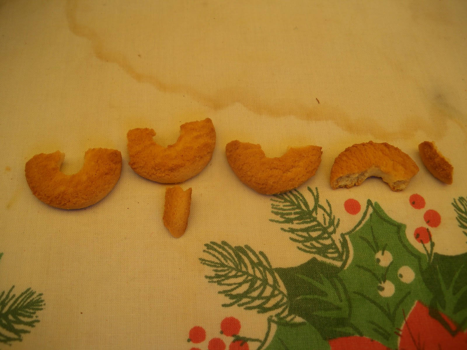 Afternoon tea with milk and sugar and coconut biscuits that we shaped to spell u y u n i (Uyuni!).