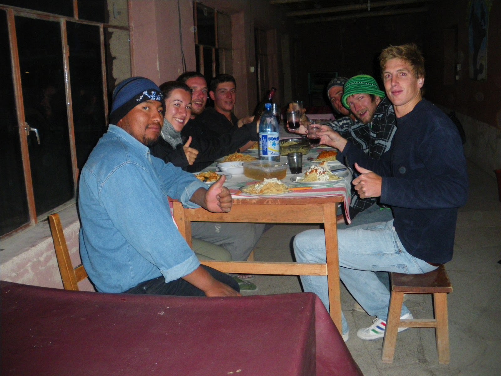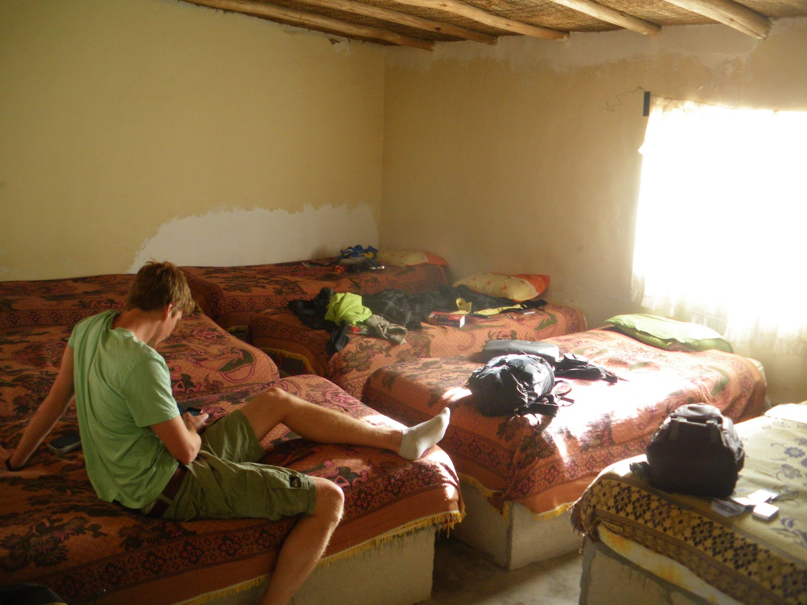 The 6 of us in our group had all bonded pretty well and we were all staying the same room for the night. This was the second night of the three day Salar De Uyuni tour. My bed in the above photo is the one with the green towel (and the mess) on it. The guy in green is Tom from Switzerland.