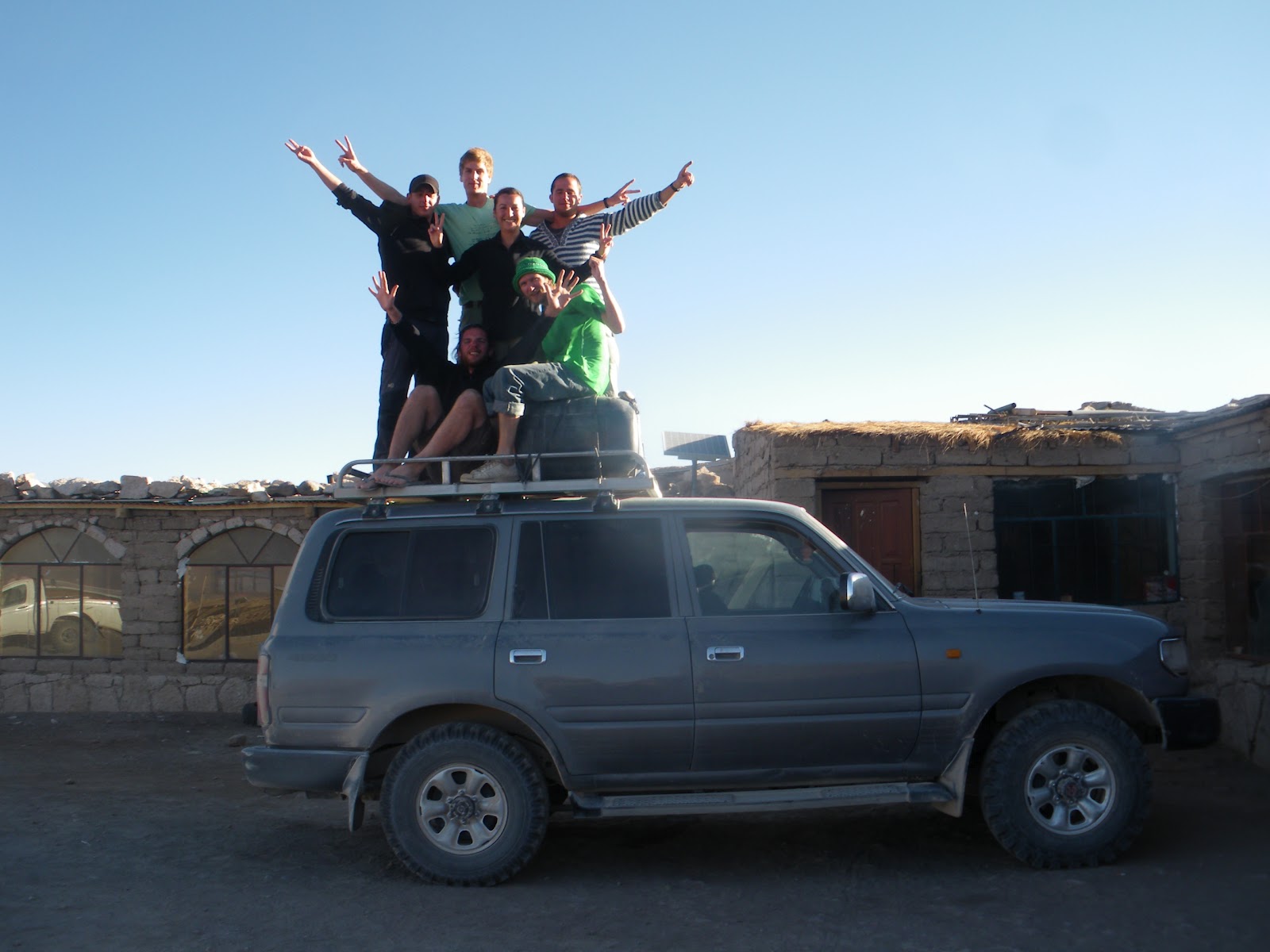 We jumped on the jeep roof at Hospedaje Las Rocas.