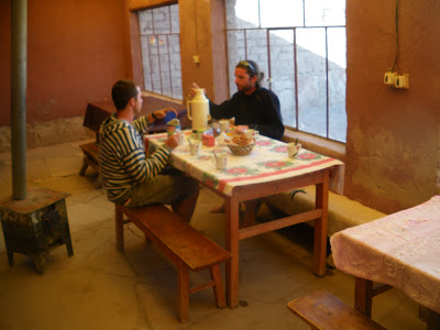 On my wanders round this sphere I have stayed in many places of various varieties through the years. This has included trains, houses, tents, hostels, hotels, inns, guesthouses, bed and breakfasts, motels, cars, settees, airports, buses, boats, flats and even bars. However this was the highest place I have ever stayed at (not including flights). At an elevation of well over 4,000 metres above sea level, you wouldn’t even believe there is a guest house here. But we drive away from the Laguna Colorada and arrive at Hospedaje Las Rocas.