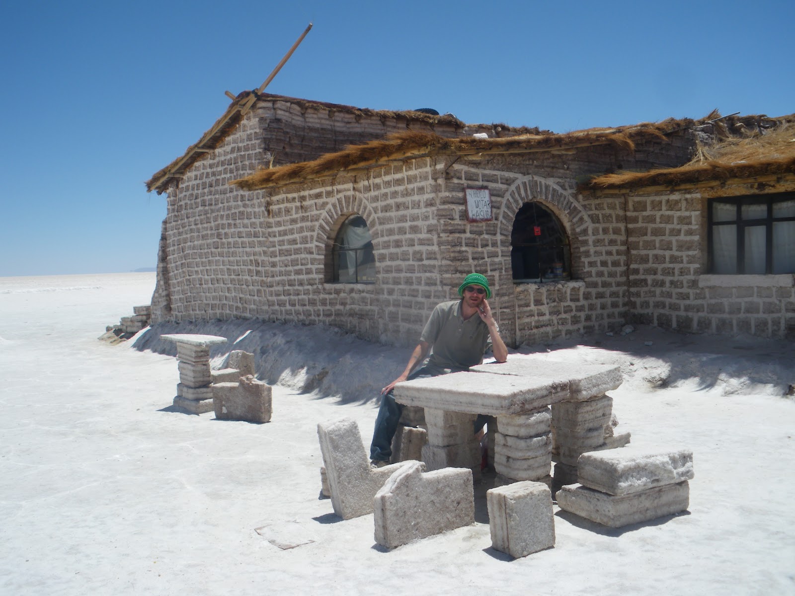 The only thing missing here is a beer. Relaxing on a salt bench by a salt table, beside the salt hotel on the salt plains. There was beer available but it was hot, we had to move on, and I was on a bit of a budget. At times on my South America trip I forfeited beer opportunites like this. Wouldn’t have minded a beer during the Inca Trail’s first 2 days either…