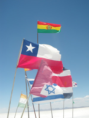 Arrival at the “main entrance” or what I’m classing as the main entrance. Flags of the world at Bolivia Salt Plains.