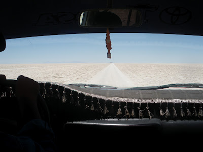 DRIVING IN OUR JEEP OVER SALT AT SALAR DE UYUNI: