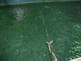 At the counter we paid 150 dollars each for the pleasure of shrimp fishing. There are no hidden costs or extras. If you catch 20 fish, you can cook and eat them there and then, or even take them away with you. This cost included a fishing rod (pick your own), a small bag of bait (wee fish), the seat where you want to sit, a net to put the ones you catch, and as much time as you want sitting by the pool trying to catch shrimps. Whether you catch one or 31 its the same price. And after that you put them on a skewer and grill them yourself before eating them! What a change from Boring old England…