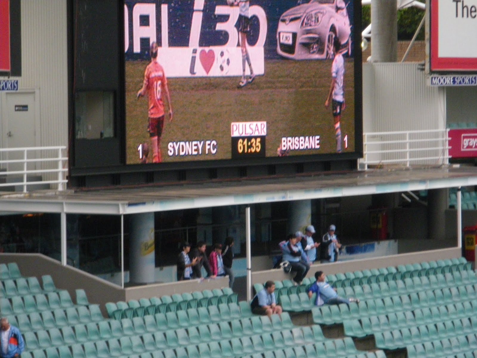 Just before we went in Daniel noticed 3 guys, 2 of them wearing Nottingham Forest shirts! How crazy that he should come all this way to watch a football match and the only shirts we saw other than Sydney shirts, were of his biggest rivals. He’s a Derby County fan! Once inside through the turnstile, we got photos by the Sydney Football Stadium sign, had a brief walk round then went on in through the mini turnstile, where you scan your barcode on your match ticket to get in. We had no real allocated seats, though my ticket says 2452 UNRESERVED. Match kick off was stated as 5 pm, entry and gates open at 2 pm. This is because in Australia, you actually get entry to 3 matches for the price. We didn’t know this, but just before we had arrived, the Sydney FC Youth Team had played their match. Once we got in, we saw the Sydney FC Women’s team playing live. This was the second match, so we sat down and watched a bit of it from the top of Section C which was unreserved and non alcohol seating. This match was slow, and though both sides had a few chances, it finished 1-1, the same score that it was when we got in, so we missed both goals. We were there to watch the main match anyway though, not the women’s match.