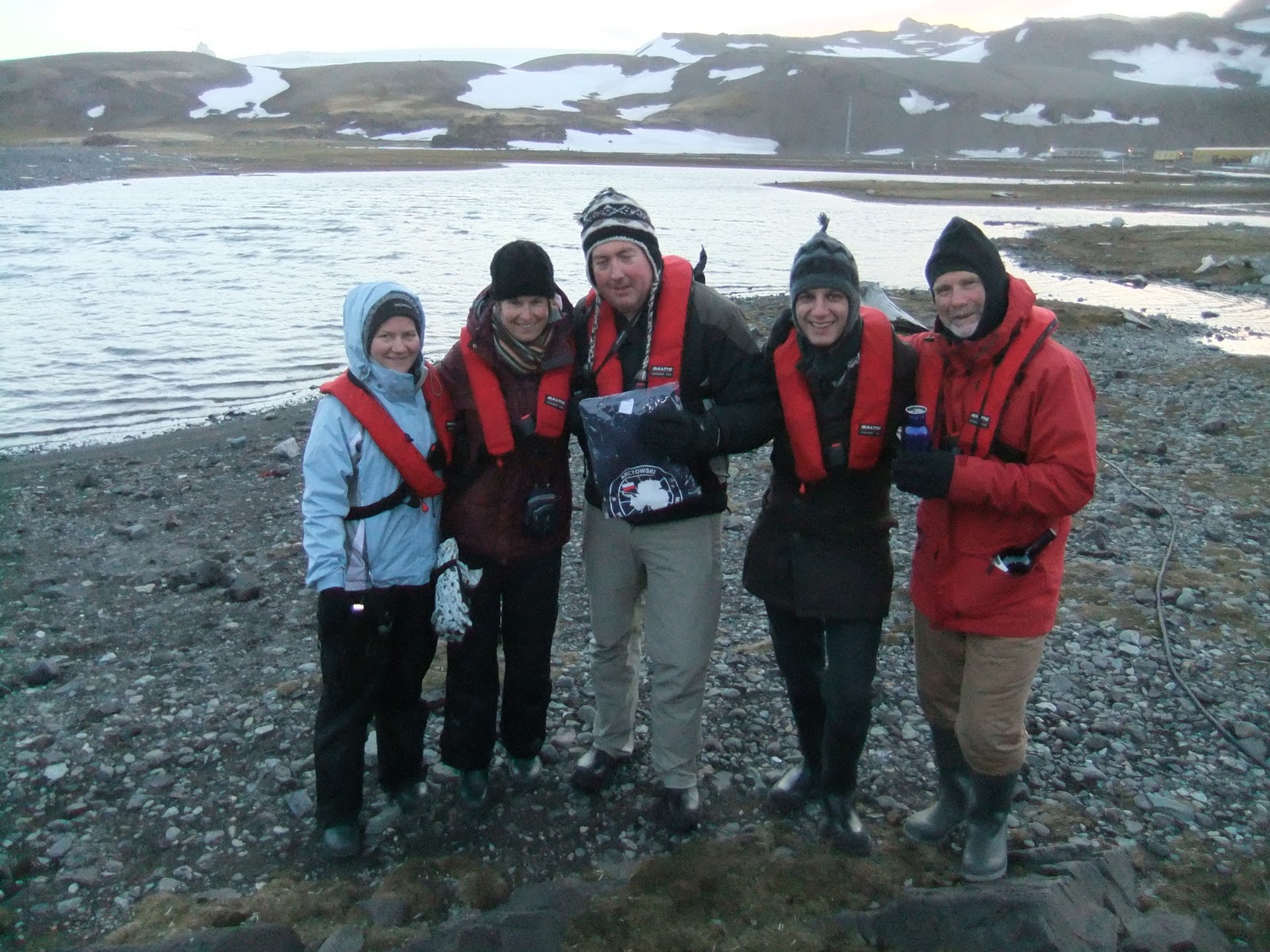 From left to right – Ilise, Monika, Russell, Rodrigo, Mark. Near the Polish base – the Arctowski Station at Admiralty Bay on King George Island, where we had our beer as a final toast to Antarctica.