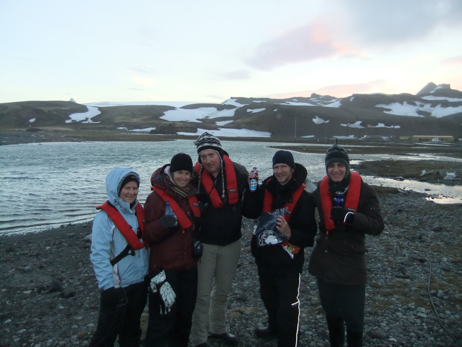 Cheers!!! A wee carryout. Having an ice cold beer at Admiralty Bay, King George Island, South Shetland Islands, ANTARCTICA. A special moment.