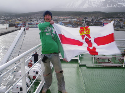 Flying my Northern Ireland flag on the Beagle Channel.