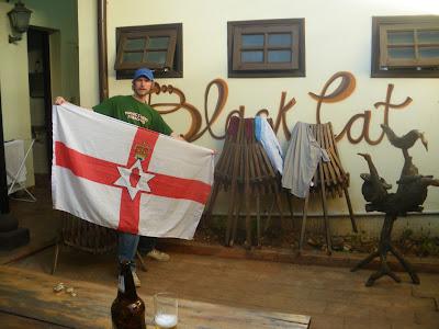 Of course my travelling Northern Ireland flag had to get an airing in the Black Cat.