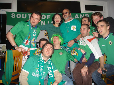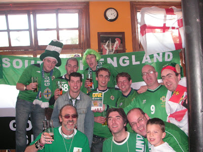 THIS POST IS DEDICATED TO THE MEMORY OF MEZ BLACKWELL, A MOST WELCOMING BARMAID FROM THE PAINTER’S ARMS IN COWES, ISLE OF WIGHT. MEZ RECENTLY DIED OF CANCER AND OUR HEARTS GO OUT TO HER FAMILY AND HER FRIENDS. MEZ LOOKED AFTER OUR WEE CROWD OF EEJITS THAT DAY AND WILL ALWAYS BE REMEMBERED WITHIN THE SOUTH OF ENGLAND NORTHERN IRELAND SUPPORTERS CLUB. THERE IS A TRIBUTE TO MEZ HERE: