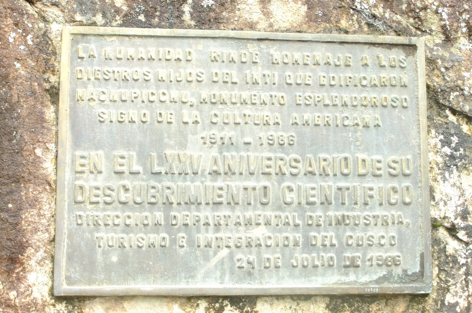 There are a few plaques near the actual entrance. I had already done my reading on it, and we also picked up a brochure at the passport stamp and ticketing office. They reckon the Ruins themselves date back to the 1400s, but one fact that is certain is that Hiram Bingham found Machu Picchu in 1911, I was there 99 years later.