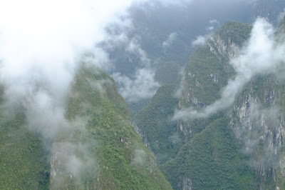 LOOKING INTO THE VALLEYS FROM MACHU PICCHU: