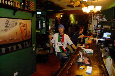 The bar was full of football shirts on the ceiling – a real typical Irish/British pub and I loved that.