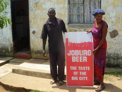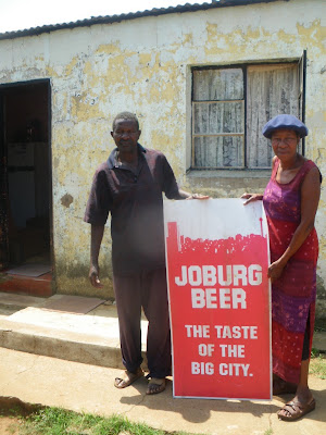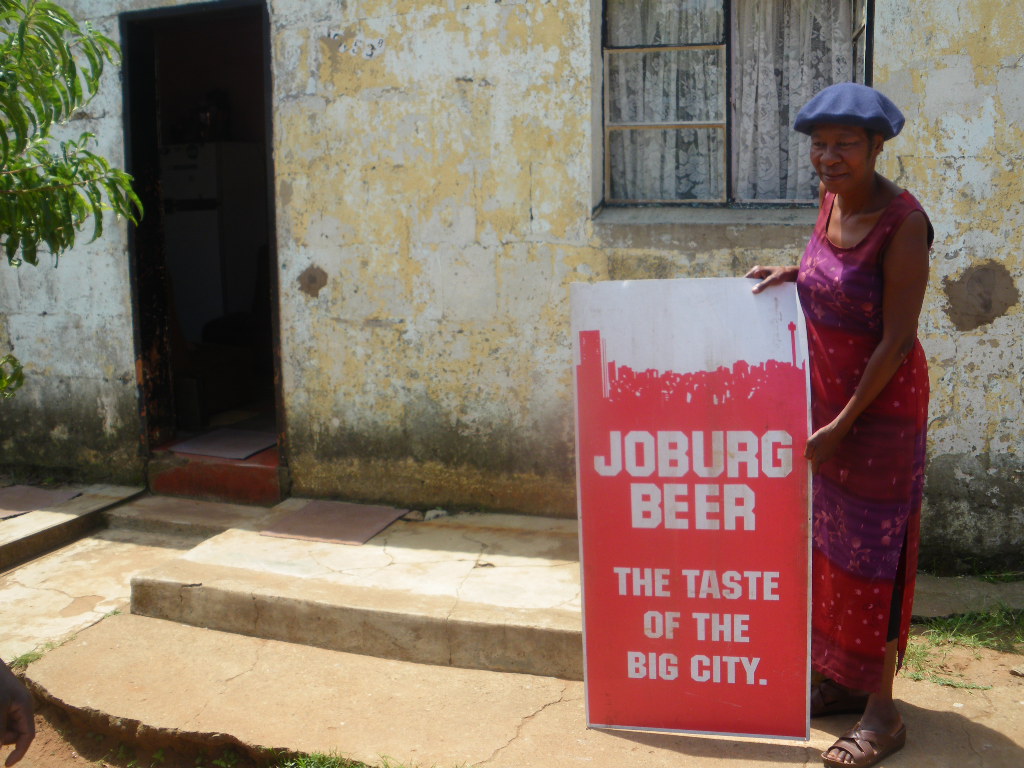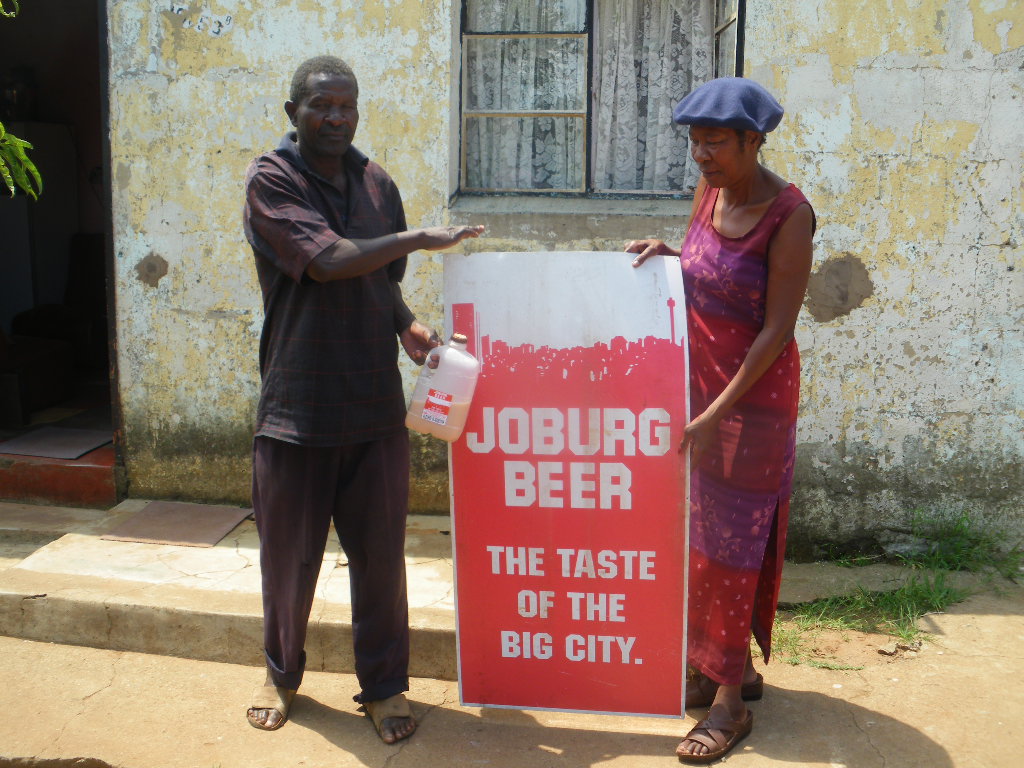 A few days later, I visited a local Shebeen on my own, being invited to drink outside this time. The lady and man who owned the flat/Shebeen welcomed me in and even got an advertising board out for me to enjoy as a tourist and to pose beside – Joburg Beer – The Taste of the Big City. Nice catchline.