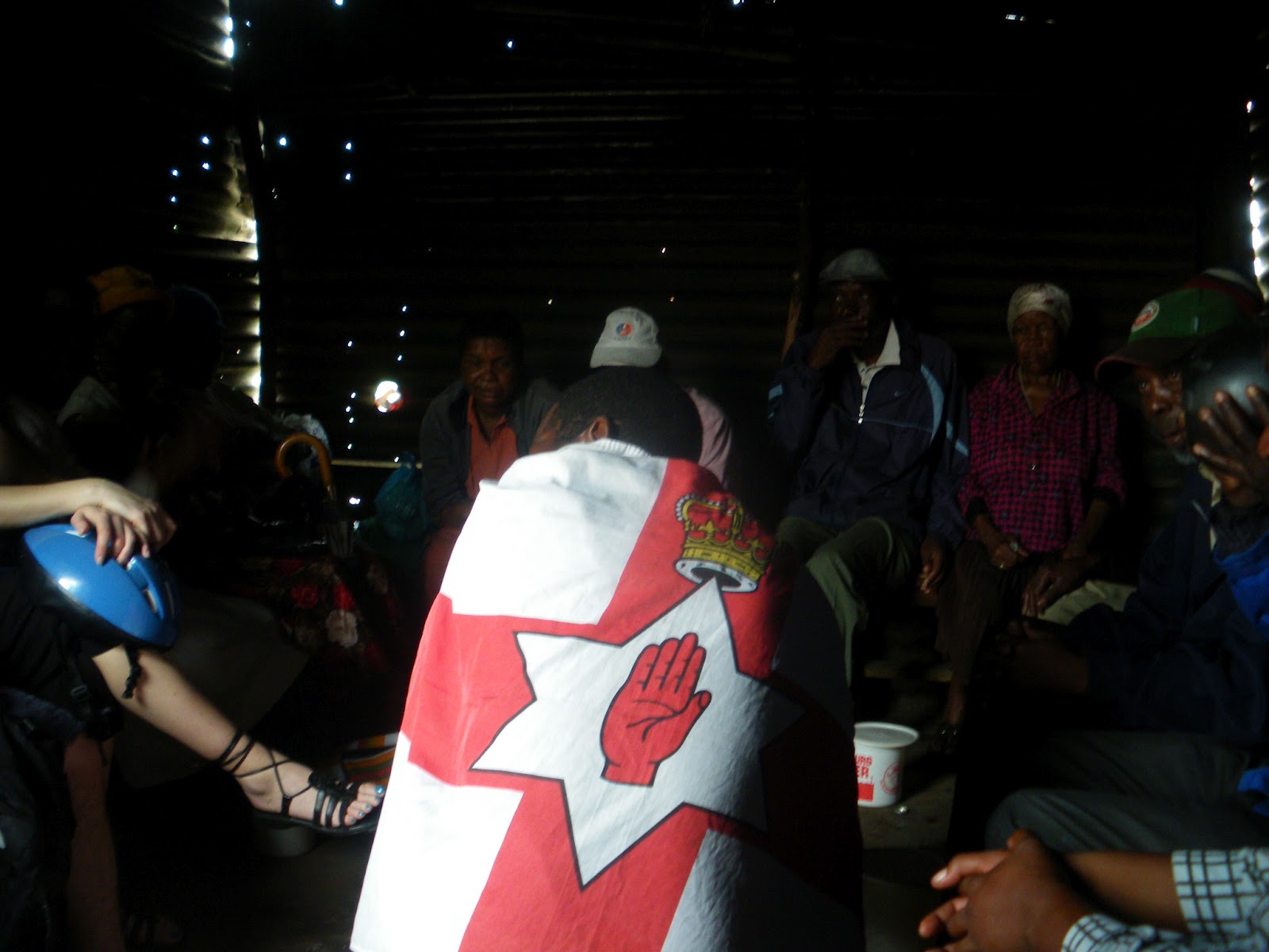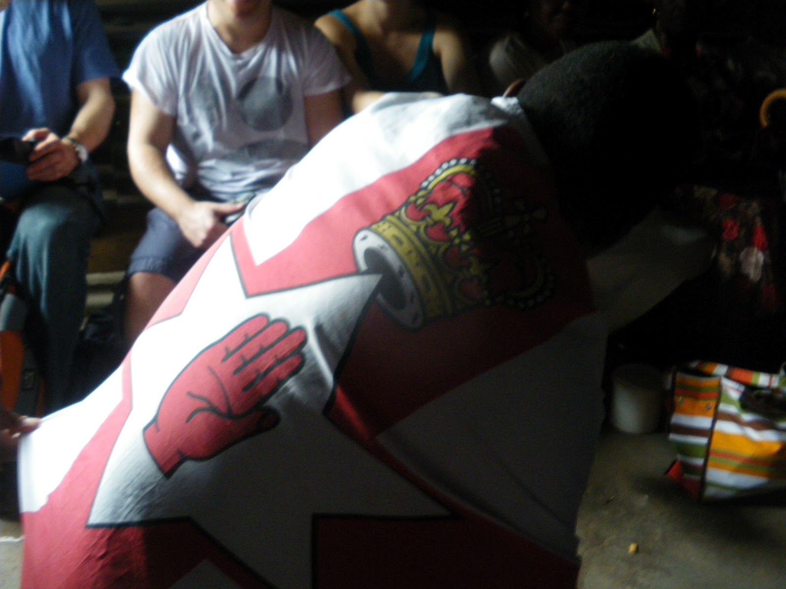 Draping my Northern Ireland flag round his back he raised a glass and got us together to listen. We closed our eyes as he said a prayer.