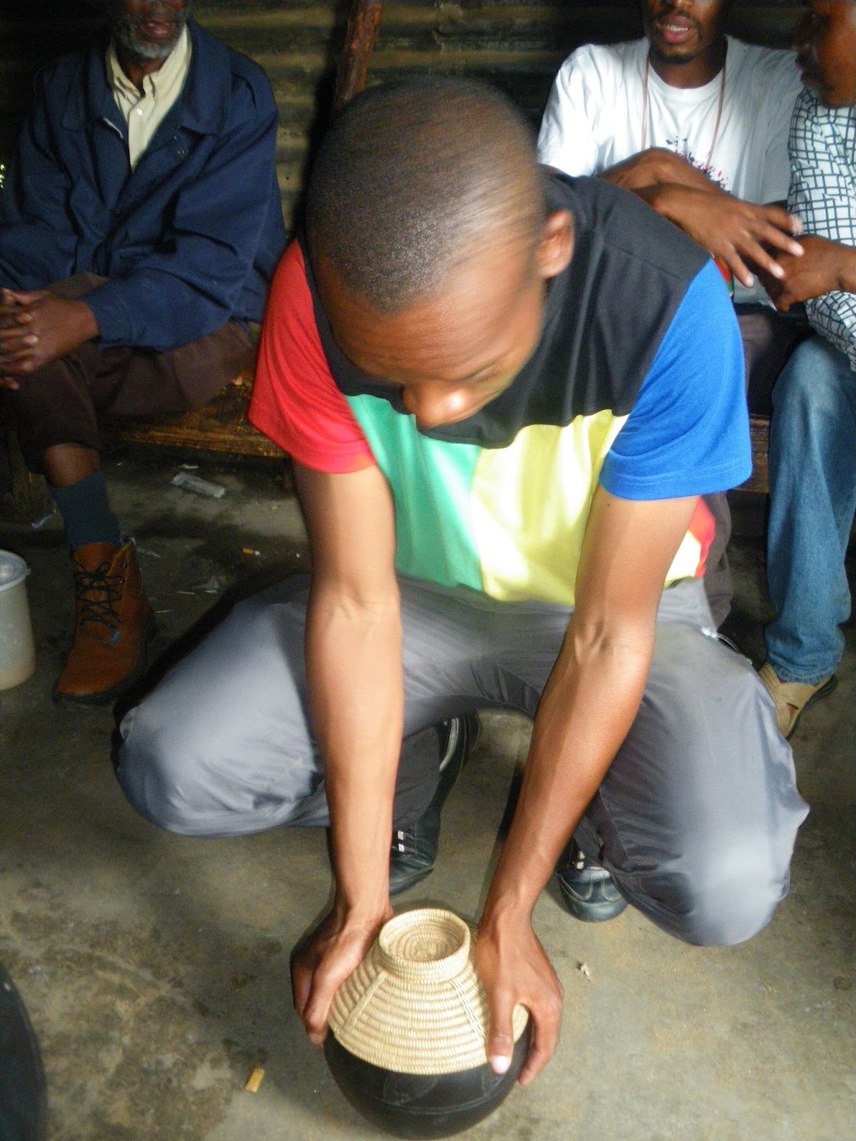 The black container with the Joburg beer or “oom gom boat ay” in it. We all had a sip then passed it round. The guy beside me videoed me sipping it, included below.