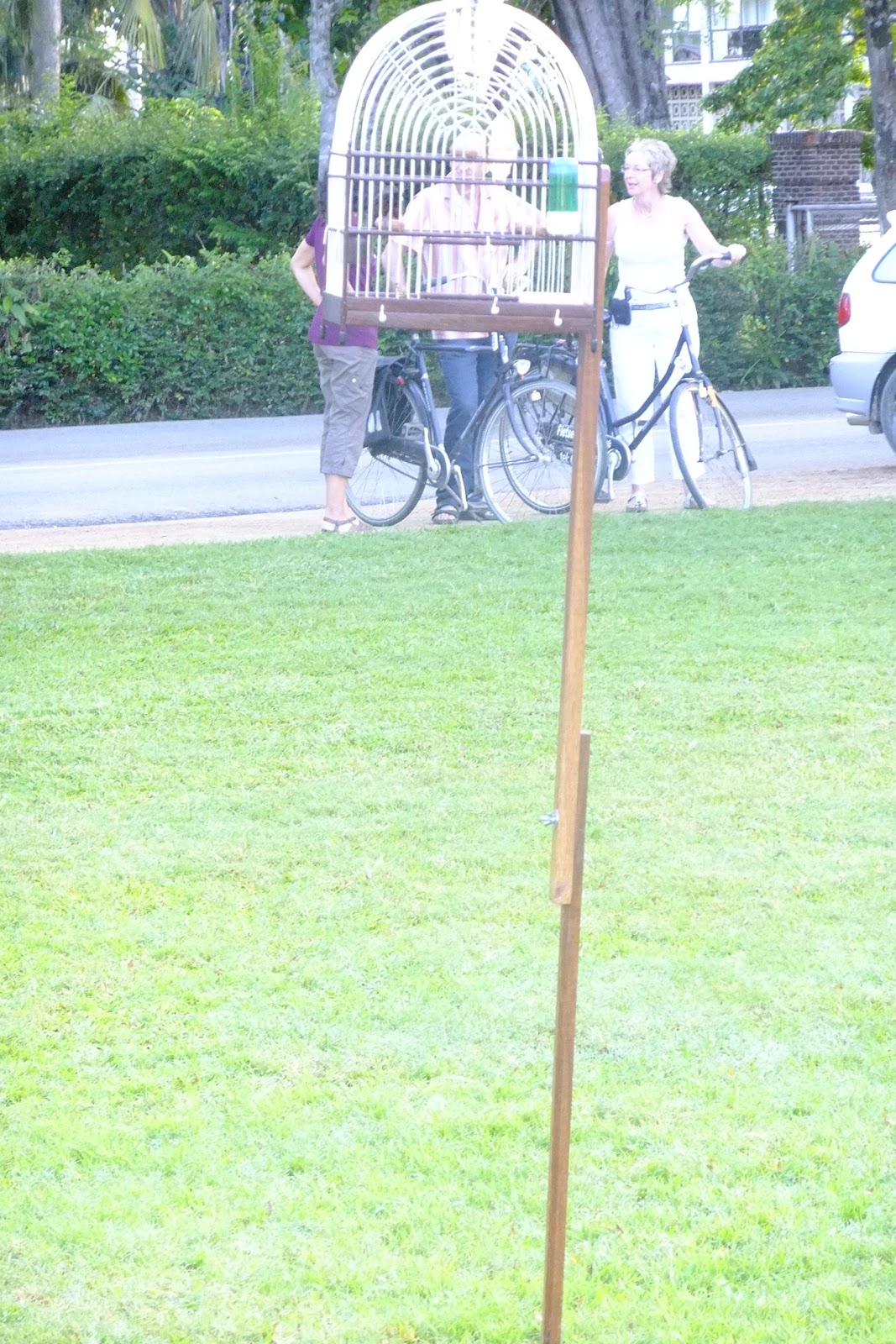 In front of one of the cages of bird singing. It felt very untouristy. Nobody else was taking photos!