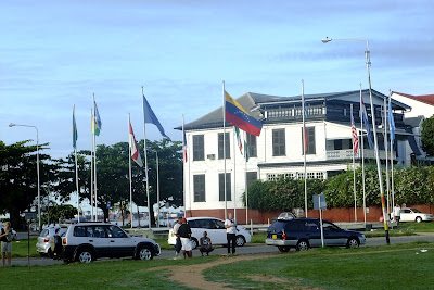 Paramaribo is tropical and in the baking heat I also flew my Northern Ireland flag in front of the parliament. Though this was taken the day after on my sightseeing tour.