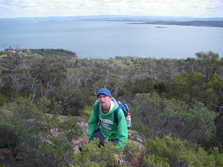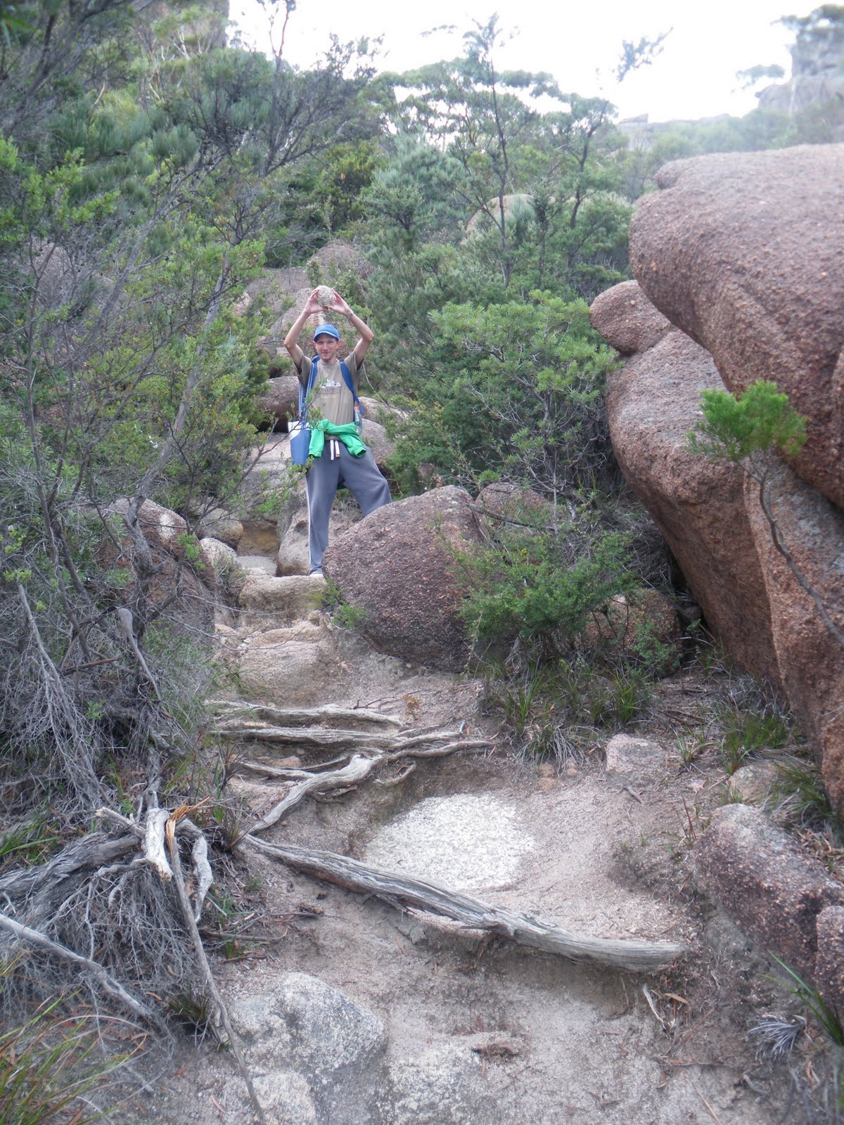 On the walk back, Joseph and I decided to climb up the steps to “Wineglass Bay Lookout”, the only scenic point on the walk. Once up to the top there, the view was very poor.