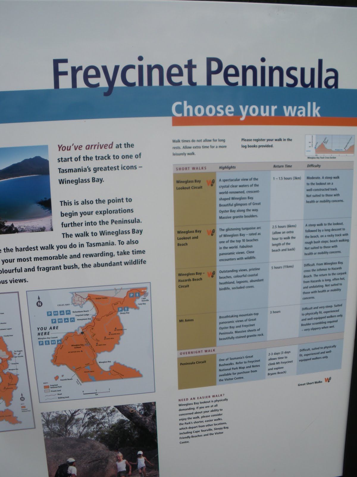 We signed the book to confirm we had completed the walk (took us around 4 hours, which included a full hour to ponder at the summit of Mount Amos). We had something to eat and then decided to do the walk directly to Wineglass Bay itself, before dusk would arrive and we would head home.