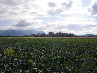 Once I moved to Poatina, Woodside was the first broccoli farm I worked on in this area. That’s the entrance to Woodside farm, with my colleague Jenny sitting on the back of my car having her lunch.